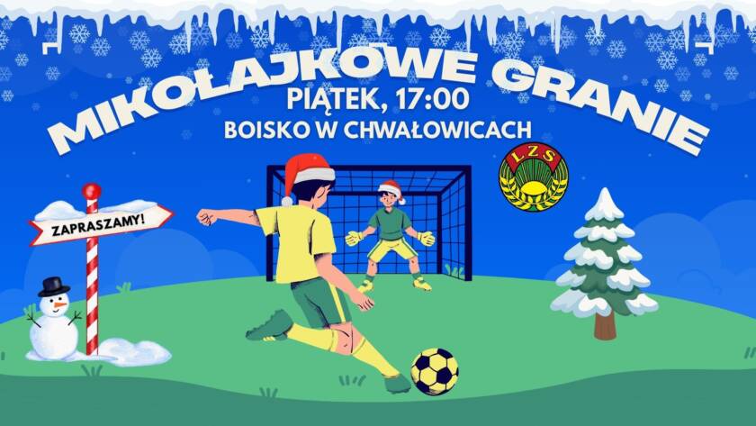 Zapraszamy na Mikołajkowe Granie na boisku w Chwałowicach! W piątek o 17:00 zamieniamy boisko w świąteczną arenę piłkarskich emocji.